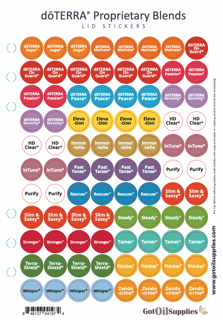 Doterra Blend Essential Oil Lid Stickers